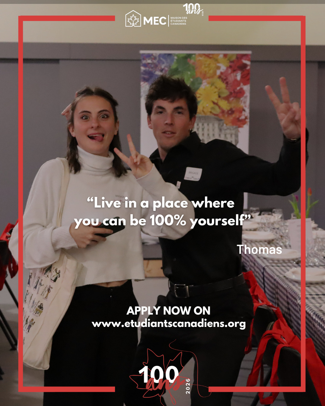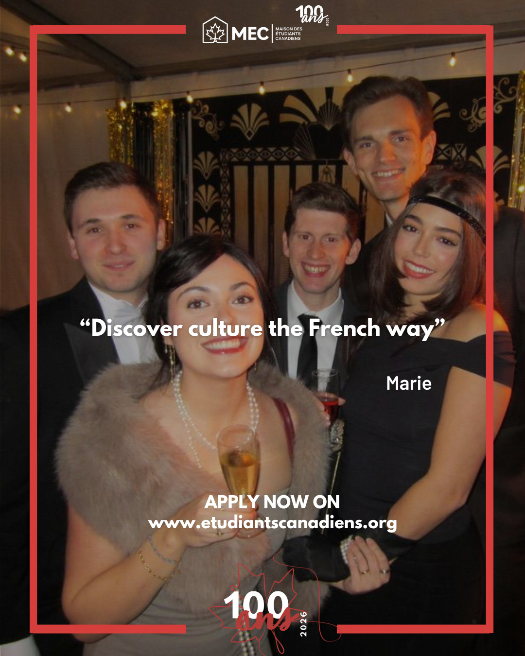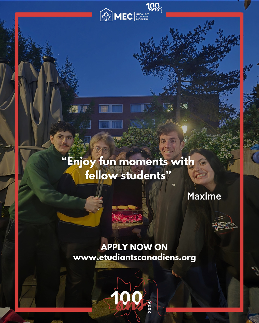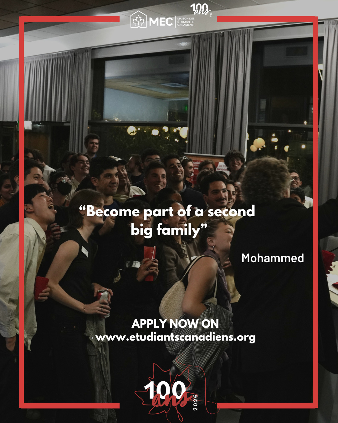 Each year, the Maison des étudiants canadiens (MEC) actively takes part in the cultural exchange (« brassage ») program of the Cité Internationale Universitaire de Paris (CIUP), dedicating around 20% of its rooms to inter-house exchanges. Through this program, a candidate may join the MEC as part of an exchange designed to promote cultural diversity and provide a truly international experience.